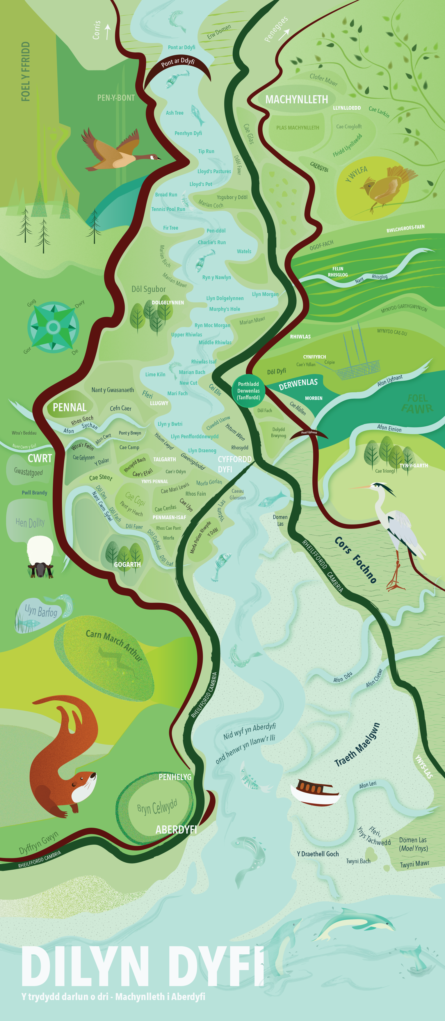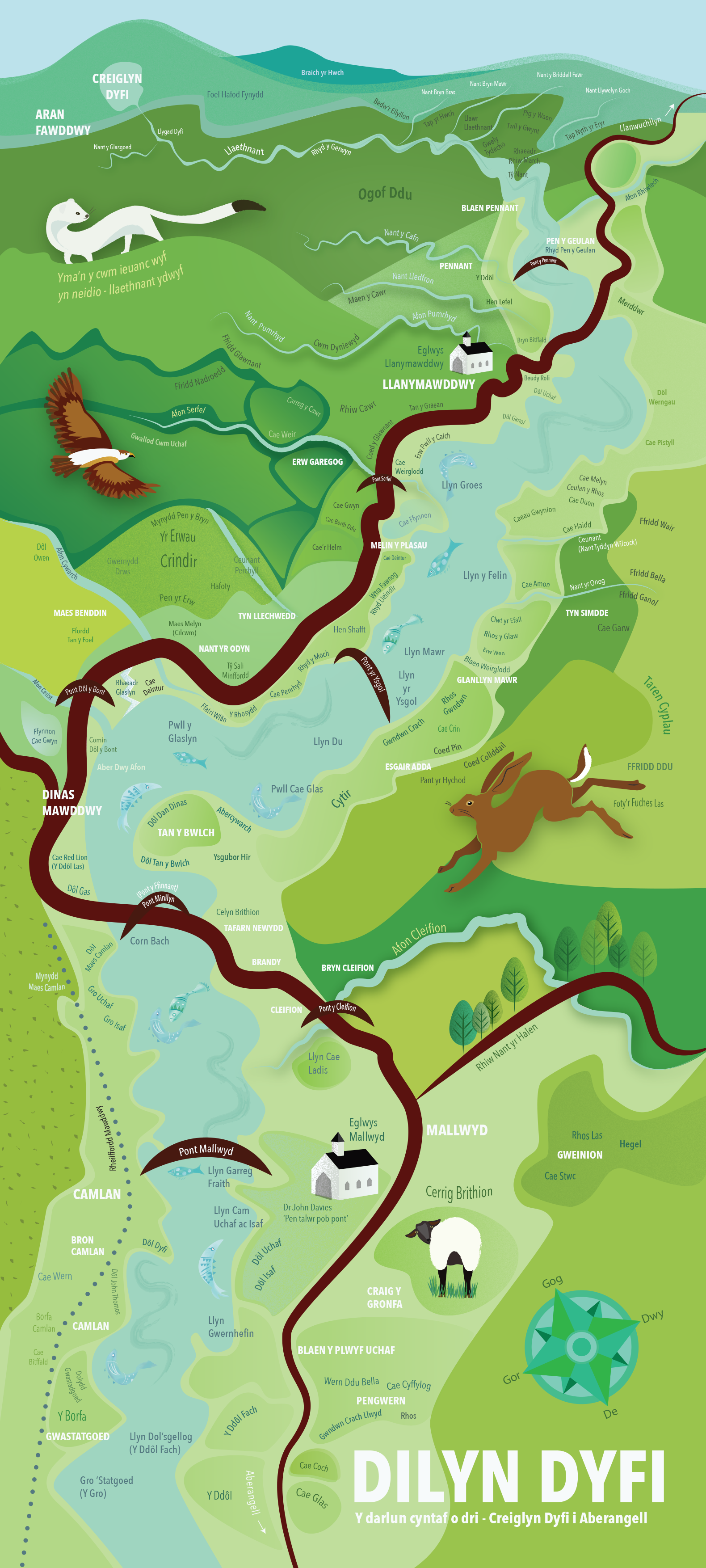A project to collect and record place-names of the Dyfi Valley form the source of the River Dyfi to the sea. These three banners show a handful of the names collected, for the full collection go to cymdeithasenwaulleoedd.cymru